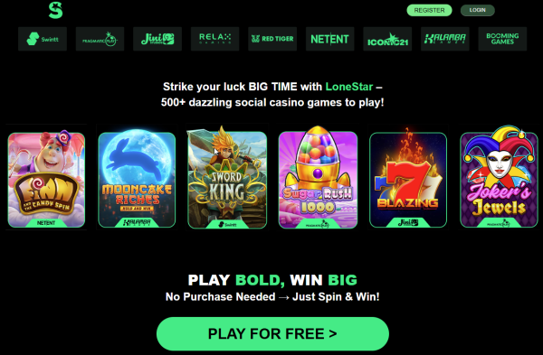 LoneStar offers ongoing incentives like daily login rewards, social-media giveaways, mail-in Sweeps Coin options, and referral bonuses. While specific welcome gift amounts vary over time, the casino consistently features these evergreen promotions to keep players engaged.